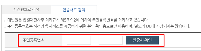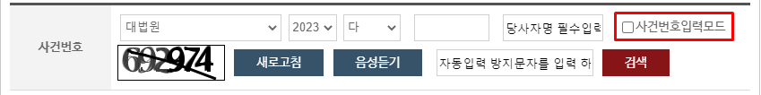 - 사건번호로 검색할 시, 페이지에서 안내되는 사항
