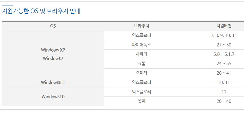 위 사진에도 안내되어 있듯, 개인정보인 주민등록번호는 사건검색에서만 본인 확인용으로 사용되며, 별도로 데이터베이스(DB)에 저장되지 않는다고 안내되어 있습니다. 입력시 혹은 공공컴퓨터를 사용하게 될 때, 꼭 주의하면 될 것 같습니다. 또한, 현재 사용하는 브라우저가 해당 기능을 지원하는 브라우저인지 혹은 지원 가능한 OS(ex.윈도우,맥등)인지에 대한 정보를 확인하면 도움이 될 수 있습니다. 해당 페이지의 하단에 확인할 수 있는 링크가 있습니다. 아래 사진을 참고하셔도 도움이 될 수 있을 것입니다.