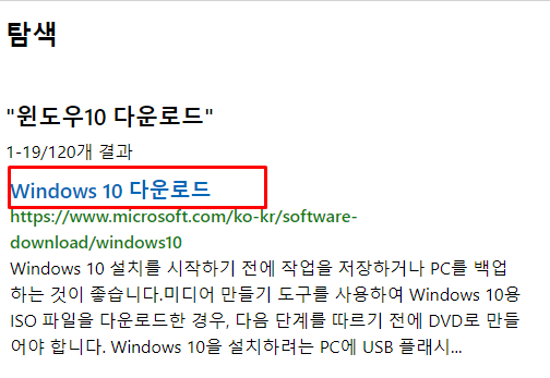 2. 마이크로소프트 다운로드센터에서 윈도우10 설치 프로그램 검색
