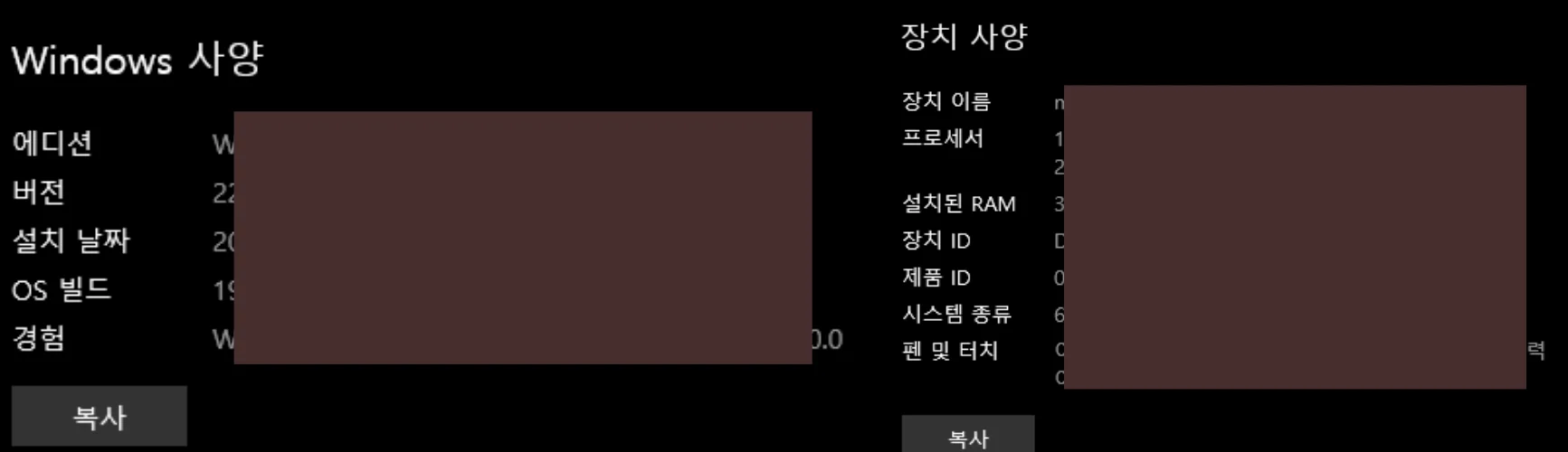 설정앱에서 컴퓨터 사양 확인하는 방법