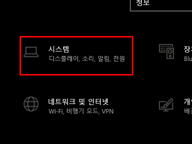 윈도우 설정의 검색을 이용하는 방법입니다. 아래는 카테고리를 이용해 찾아가는 방법입니다.