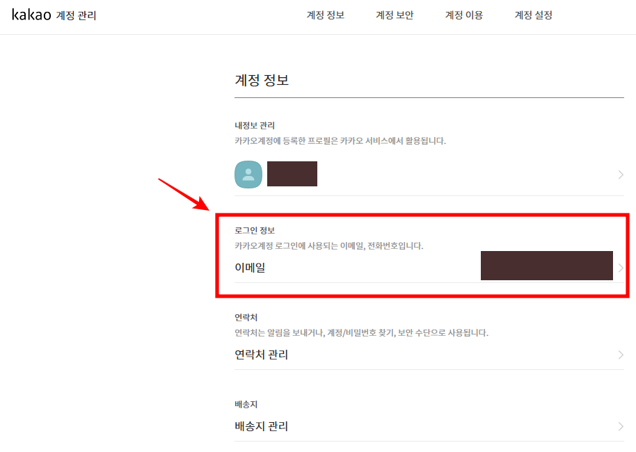 stepB. kakao 계정관리 페이지에서 로그인 정보 확인하기